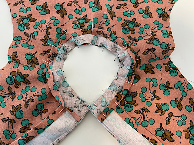 Using your CB (center back line) as a guide, lay your left piece overlapping the right piece and pin in place. Sew the baste stitch.