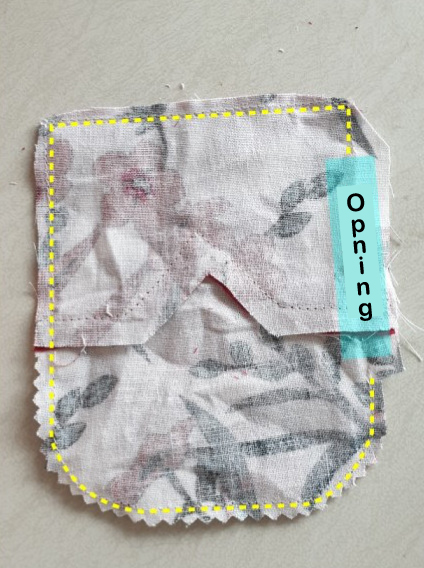side line as shown.Trim the points on any sharp angles. Through the back hem line, turn the piece right-side-out.